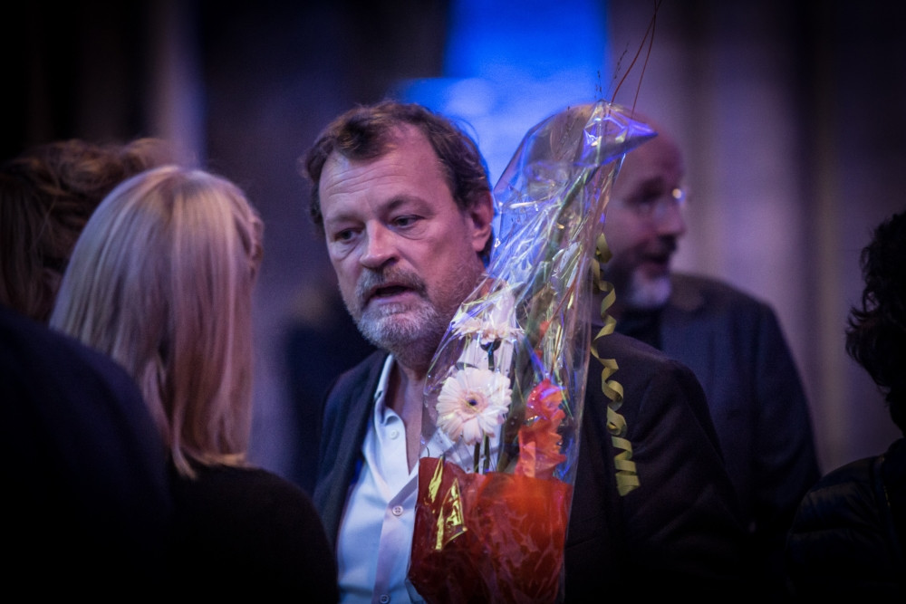 Bent Sørensen thanking Trio con Brio at Frimurerlogen. Copyright: Kristian Wanvik / TCMF