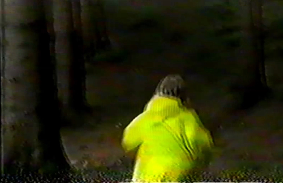 På skærmen vises også pixelerede, hakkende filmoptagelser.