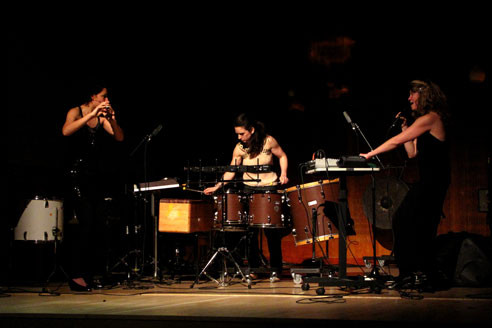 Linda Edsjö, slagtøj, Jennifer Dill, fløjte, Randi Pontoppidan, sang & elektronik