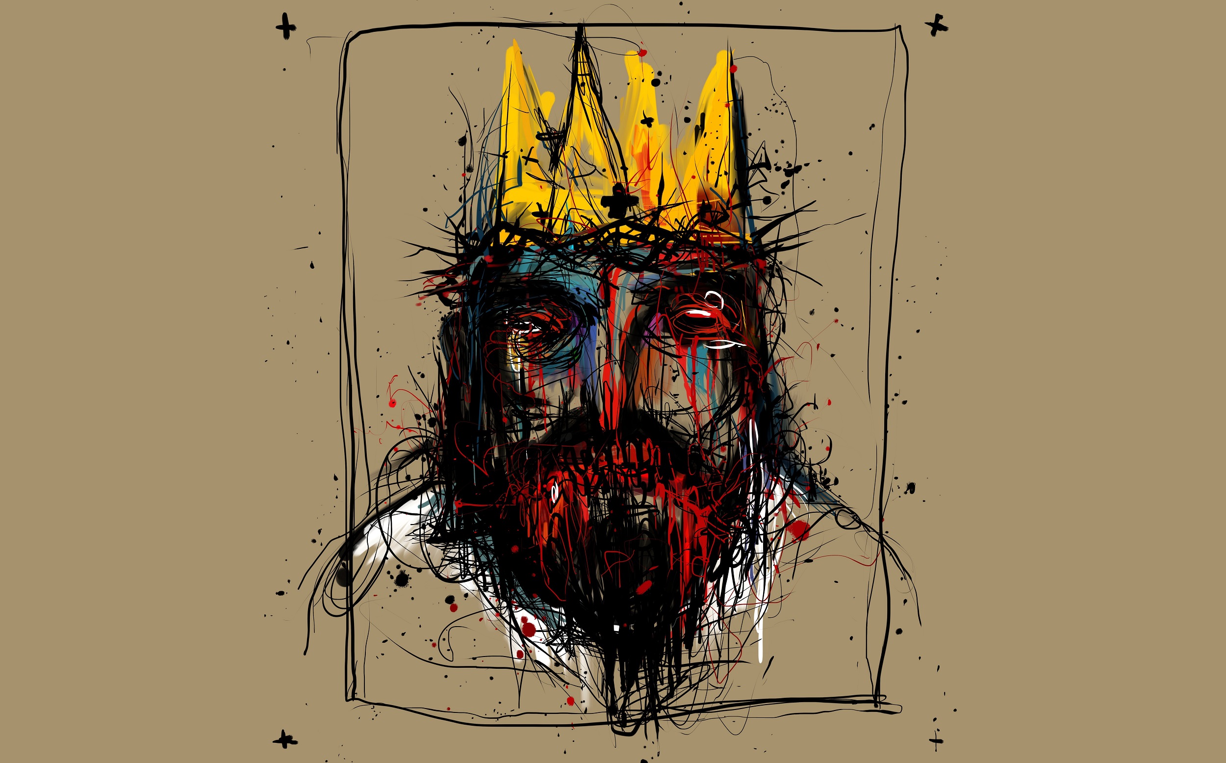 I et fantastisk øjeblik ifører kongen sig et amerikansk flag, som han draperer som en toga, mens han stiller sig op i kirkens bageste del, lige foran en fresko, hvor Jesus står med en finger i vejret; kongen indtager præcis samme stilling. Symbolikken – ‘jeg er den egentlige frelser’ – er klar og overvældende komisk. Kongen er gal … men sjov at se på.