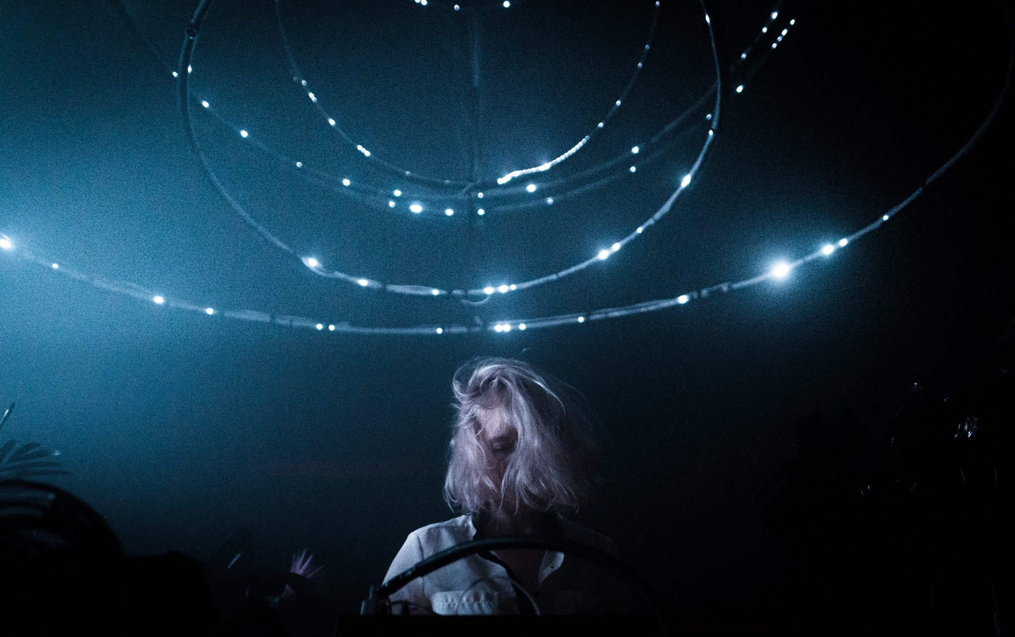 »Udgangspunktet var, at jeg lavede en eller anden form for rave, men så kunne jeg bare mærke, at det skulle ikke være sådan en koncert. Alice, Kristin og Nathalie talte om, at de alle havde haft meget spirituelle oplevelser andre gange, de havde hørt mig spille, og det ville de gerne forstærke visuelt. Der skulle altså flere facetter på. Det skulle være noget større, hvor man talte ind i den her storhed, som installationen også kom til at have – hvor jeg virkelig fik de andre dimensioner med ind i musikken. Jeg spillede også ting, der var superabstrakte, meget fragmenterede, og fik sat hele rummet i bevægelse, så det resonerede i folk. Jeg tænkte meget over i processen: Hvad er det, vi er i gang med at skabe? Hvad er den højere kvalitet af det her? Det ville jeg jo gerne give videre.«