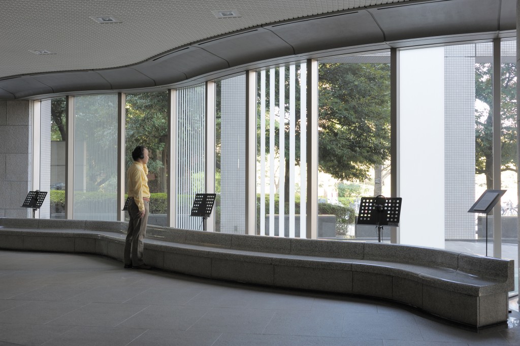 Hvor Tsunodas værk installerede en lydlig måleenhed eller en “standard” mod hvilken elementer i miljøet gøres auditivt nærværende, introducerer Shimizu et system af periodiske afbrydelser i forskellig skala, der fungerer som en slags variabel grid-lignende struktur hvor igennem ”landskabet” kan erfares på forskellige måder. Som det er tilfældet i Tsunodas værk introducerer Shimizus installation herved et relativt system, hvor igennem rummet (landskabet) erfares. Den individuelle erfaring af omgivelserne bliver derved et produkt af denne relation.