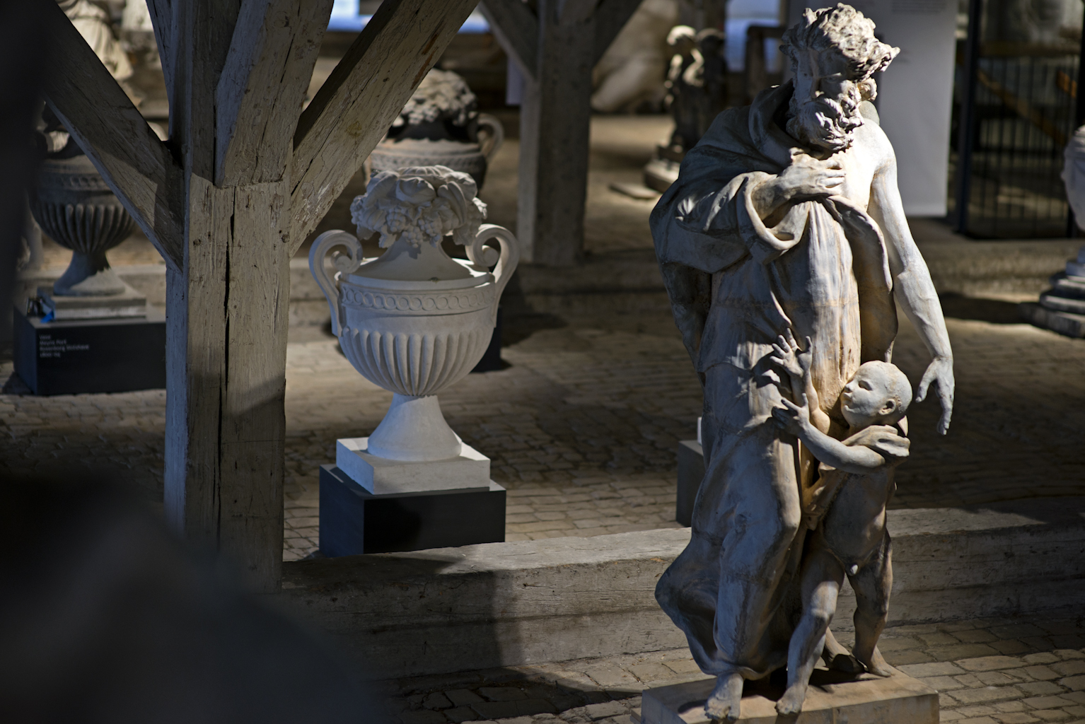 Vi går op ad trappen og mødes af endnu flere skulpturer på et stort træloft. Vi nyder lyset, der strømmer ind af vinduerne, hvilket står i kontrast til, hvordan både traditionelle koncertsale og museer ofte – af praktiske årsager – må lukke lyset ude. Sine udpeger én af statuerne og fortæller, at hvis jeg kigger ud af vinduet, så vil jeg kunne se den i sin tiltænkte funktion, nemlig som udsmykning på Marmorbroen. På vores videre tur gennem lapidariets mange rum og kroge taler vi om, hvordan man næsten kan forestille sig, at der er et ekstra publikum til stede i kraft af de mange livagtige skulpturer.