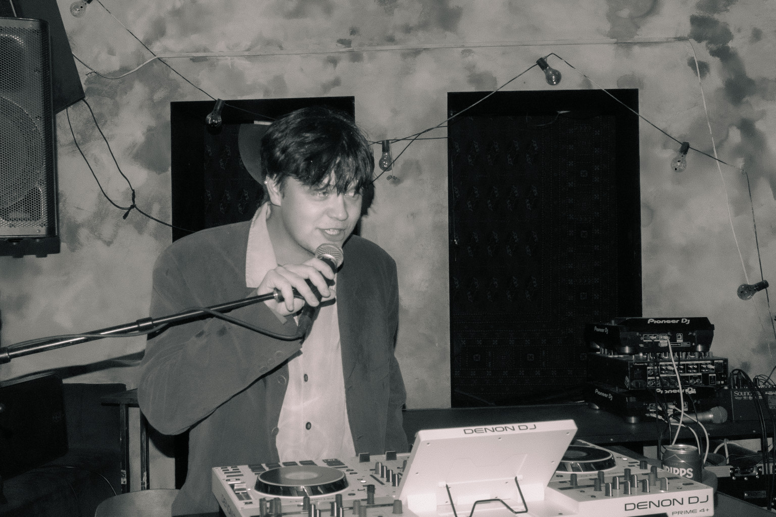 Stemmen fik først et let ekko, satte sig så i rille – »stem-på-mig-stem-på-mig-stem-på« – og blev afløst af kortsluttet 8-bit-elektronik, svigtende museorgel og blafrende monologer over livejazz, der mimede en absurd medievirkelighed.