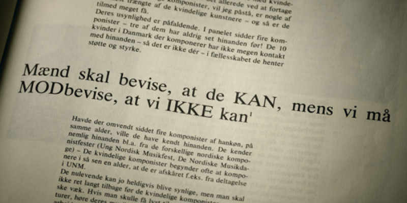 Oplæg til paneldiskussion holdt på Musikhistorisk Museum ved åbningen af udstillingen »Kvinder komponerer« under Kvindekonferencen i sommer. I paneldiskussionen, som ikke refereres her, deltog Birgitte Alsted, Gudrun Lund, Else Marie Pade og Diana Pereira.