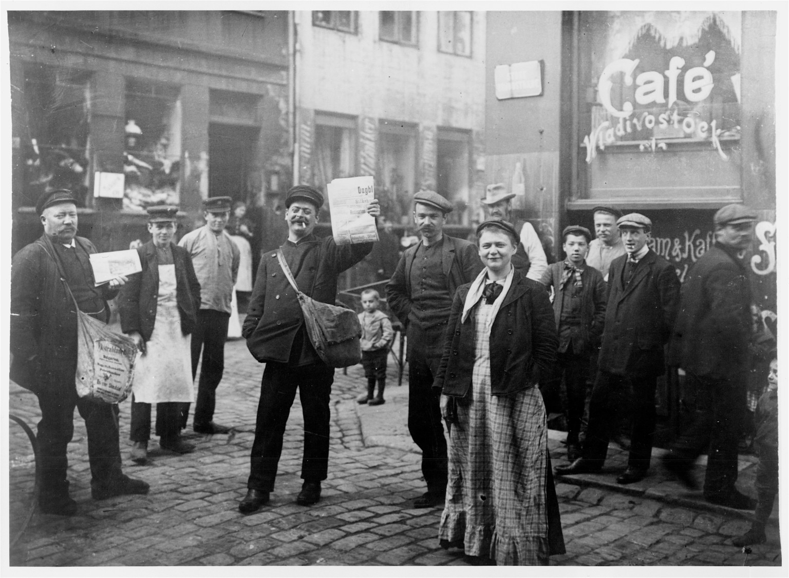 Soon street vendors changed strategies by using other ways to attract customers and were eventually outcompeted by newspaper sellers, who drowned each other out – and everyone else – with shouts of newspaper headlines, which the exhibition describes as becoming »the sound of the modern city’s hunger for news and connection to the wider world.« At Grønttorvet near Nørreport, women from Amager and many others sold their goods with shouting and gestures. One famous voice from interwar Copenhagen was the fishmonger Dagmar Hansen, who sold fish on the street in Østerbro and became a media personality over the years.