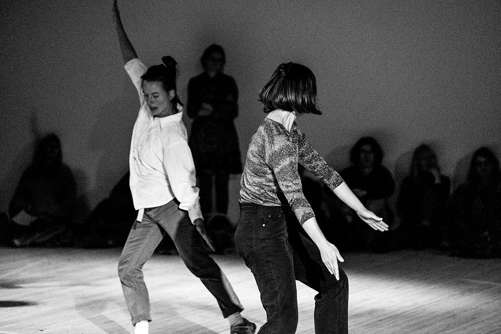 Another factor that prevails in the relationship between drums and dance is the associations one gets with traditional dances, where the drums often dictate the dance. To draw a parallel to the issue of gender, there is also an element of a gender relationship here, where it has often again been men playing drums and women dancing. We feel this historical awareness in ourselves and from colleagues and the audience. There is a discomfort associated with this, as despite the long struggle of women, we are still in a patriarchal-dominated society. For that reason, it is actually absolutely crucial that our gender constellation is as it is - and that we do our best not to let the drums dominate the dance. That being said, there will always be moments where the drums take over and others where it is the dance that is in focus. In this way, we strive for an equal relationship, where the media's possibilities and limitations come into play in the best possible way.